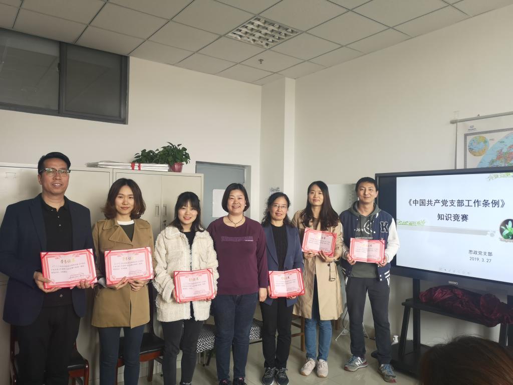为全面落实党中央关于党员教育管理工作要在提高质量上下真功,增强针对性和有效性,切实防止形式主义,坚持“三会一课”、主题党日、集中培训等基本制度,使党员教育管理有力度有温度,加强改革创新,提高党员教育管理工作现代化水平的总体要求。4月3日下午,思政党支部在思政部办公室召开全体党员大会,开展“《中国共产党支部工作条例》知识竞赛”主题党日活动。本次活动由思政党支部书记赵建英主持。