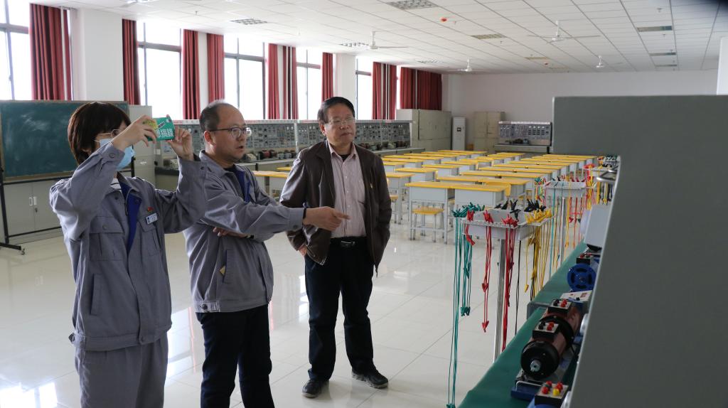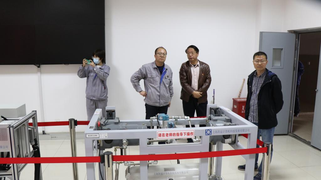 朱永利科长从机车检修段筹建时就开始着手职教事业,朱永利一行先后参观了HXD3型机车模拟驾驶装置、无损检测实训室、机车电器实训室、行车安全装备实训室、CCB-Ⅱ型电空制动机实训室、电机拖动控制实训室、机车一次乘务作业实训中心、动车组驾驶暨牵引传动实训中心、电力电子技术实训室、可编程控制实训室、传感器检测实训室等实验实训场地。朱永利科长在西安机车检修段筹建初期就致力职教事业,他非常重视专业基础和专业实验实训室建设成果,希望通过校企合作,加强员工基础能力和专业能力训练与提升。