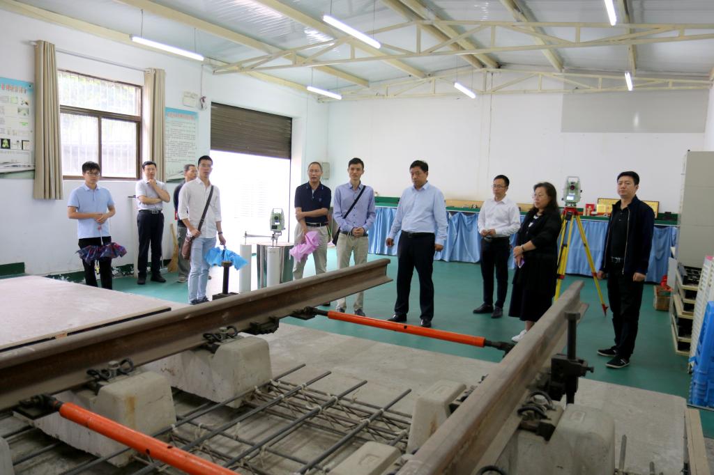 柳伟一行实地参观考察了校区高速轨道精调、铁路桥梁、铁路道岔、轨道探伤等实验实训室和铁路工务机具展示厅,在校区刘锋、高永刚、何宏斌等专业教师的演示和讲解下,详细了解了各个实训场地的布局和功能。