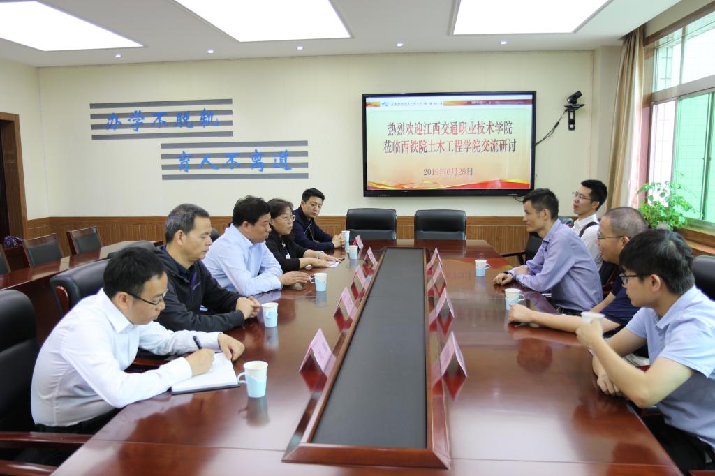 6月28日,江西职业技术学院建筑工程系主任柳伟等一行四人来到贝博官网临潼校区进行参观交流并召开座谈会,校区主任熊奇、相关教研室负责人、专业带头人及专业教师全程陪同。