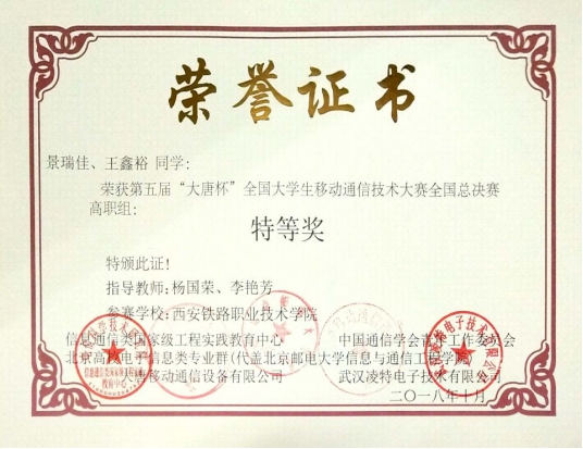 作为教研室负责人,尽最大努力调动大家积极性,做到有困难上,有荣誉让。以技能大赛为切入点,加强校企合作,先后安排老师参加大唐、中兴、新大陆、深圳IUV、联想、华为等企业的培训和交流。同时,密切跟进ICT行业发展,近三年来,带领教研室老师指导学生参加教育部技能大赛 “物联网技术应用”、“移动互联网应用软件开发”、“4G全网建设技术” 三个项目以及行业赛“大唐杯”、“IUV杯”两个项目,荣获多项荣誉,教师参与率100%,师资水平得到大幅度提升,让老师和学生们走出去,与专业兄弟院校同台竞技,在加强专业技能的同时更新教师和学生的教学理念和就业理念。