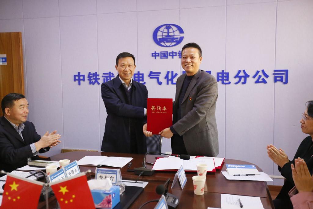 11月18日,电子信息学院与中铁武汉电气化局机电分公司( 以下简称:中铁武汉机电分公司)共建产教融合实训基地揭牌仪式在中铁武汉机电分公司举行。中铁武汉机电分公司党委书记严国涛、工会主席总工程师耿高鹏、副总经理宋佰华、李志亮,公司人力资源部、通信信号项目部等部门负责人,电子信息学院党总支书记张伟敏、院长董奇、副院长冯国良、教研室主任、专业带头人等出席仪式。