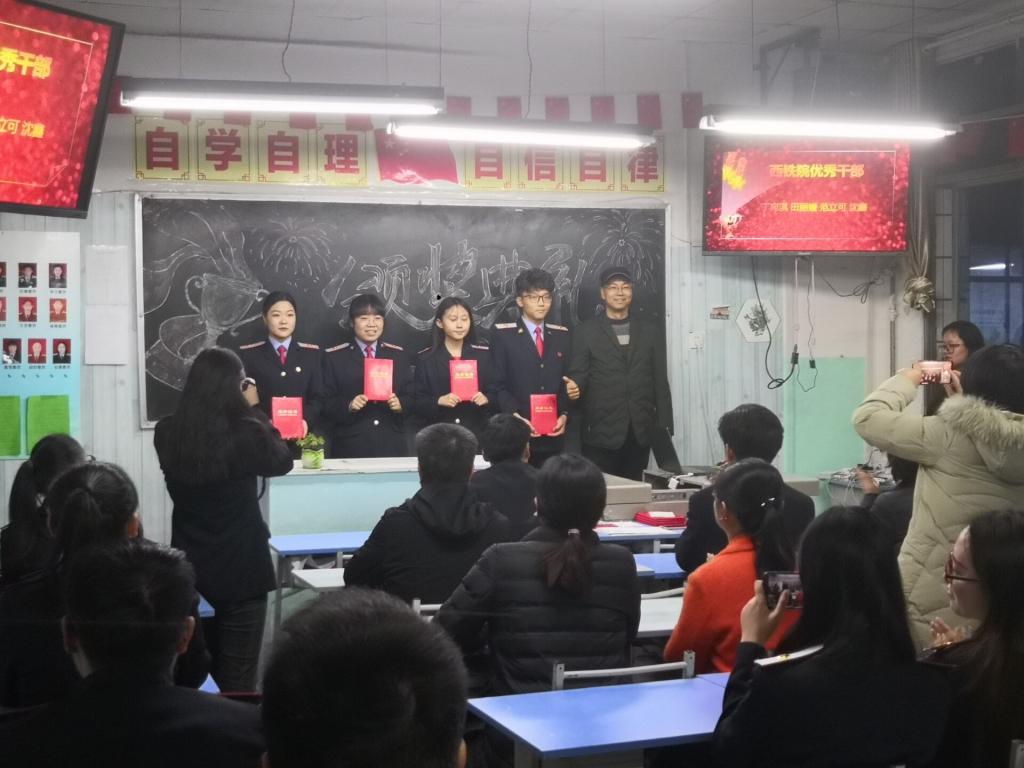 在接到学院通知后,各个班级早早开始筹备大会。22日晚,主题鲜明的黑板报配上多媒体音效,营造出浓厚的表彰氛围。晚7点,各班表彰大会准时开始,由主持人宣读本班本学期在创先争优暨双十学习竞赛中获奖班级和学生名单,由仵崇智为获奖班级颁发优秀班集体奖牌,由孟永辉及各年级组长、辅导员、班主任老师为获奖同学颁发个人奖。