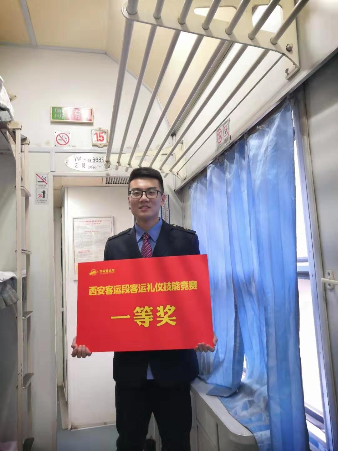 在西安客运段12月中旬举办的客运礼仪技能竞赛汇演中,贝博官网动车组驾驶1702班的罗猛同学带领他们的团队脱颖而出,荣获一等奖。