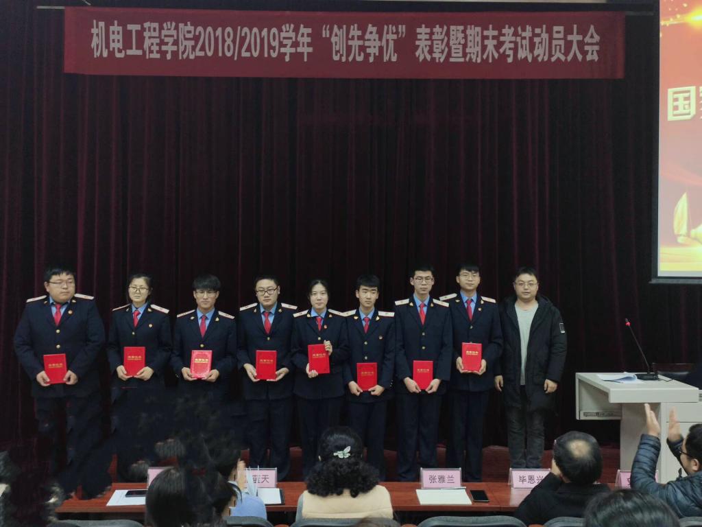 12月25日,机电工程学院召开2018-2019学年“创先争优”表彰暨期末考试动员大会。