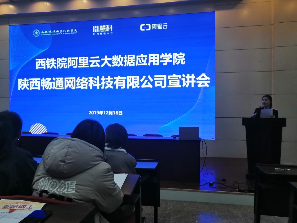 陕西畅通网络科技有限公司(阿里云客户服务中心)是阿里云在西北的唯一客户服务中心,也是阿里集团使命及战略合作伙伴,荣获陕西省"企业上网工程"指定服务商。此次是为明年招收做准备,并与大数据学院达成长期战略合作。畅通公司的王文萍经理以HR的视角告诉学生面试时的注意事项,包括服饰礼仪、行为礼仪、面谈礼仪等,并就规章制度、福利待遇、企业文化、现有产业结构、组织构架、人力资源政策等几个方面展现了企业的各项信息和文化理念。期间王文萍经理穿插了“秀才进京赶考”的故事,揭示了“心态不同,得到的结果就不同”的道理。