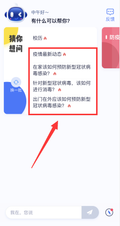 如何查看防疫知识:1. 在热点问题中直接点击需要查看问题: