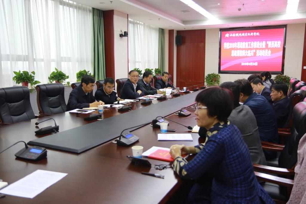 4月24日上午,学院党委召开2018年思政教育工作推进会暨“陕西高校思政课教师大练兵”活动动员会。学院党委副书记邓耀斌、副院长安学武,思政部主任景延鹏,思政部办公室副主任赵建英、牵引动力学院党总支书记和晋秦出席会议并讲话,宣传部部长张家琪、教务处处长滕勇、各二级学院院长及思政部全体专任教师参加会议。会议由邓耀斌主持。