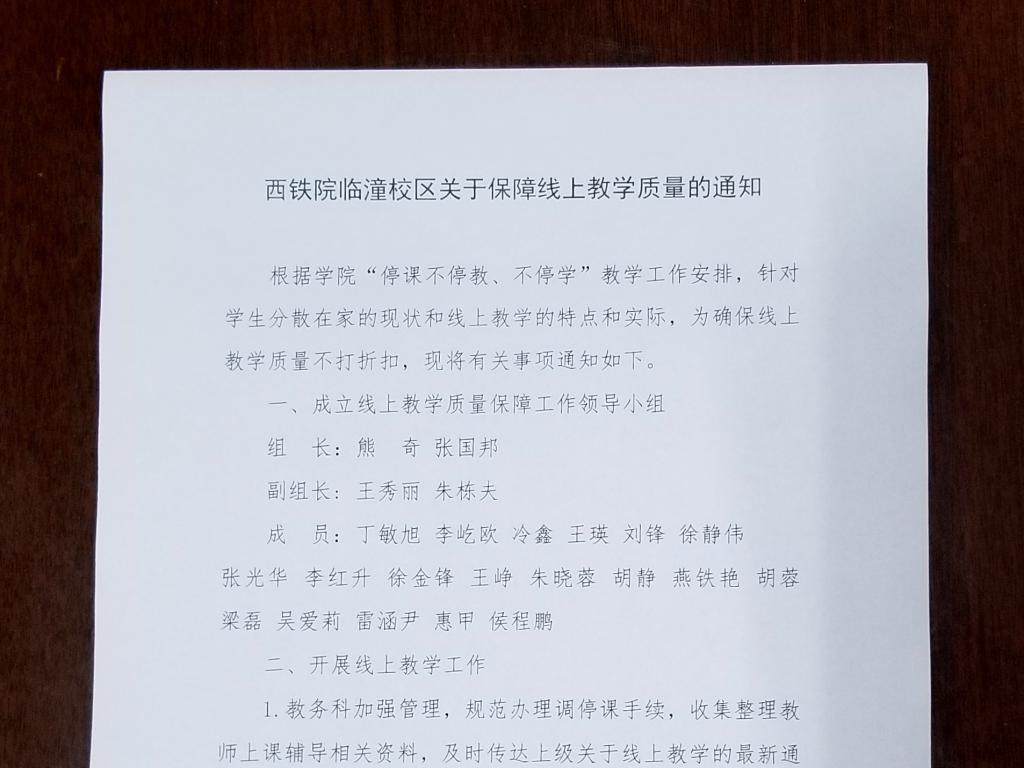 一、校区成立线上教学质量保障工作领导小组,强化质量管控