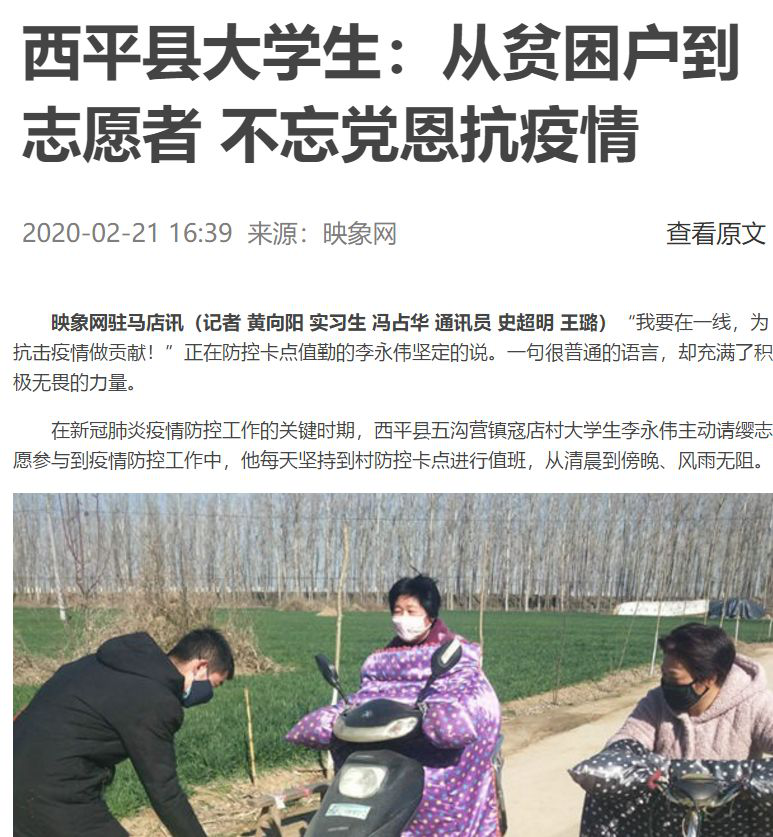 下面,是牵引动力学院通过“牵引动力学院公众微信号”、“河南映像网”、“陕西文明网”、“西安发布”等梳理出的有关牵引学子奋力抗疫的有关报道。