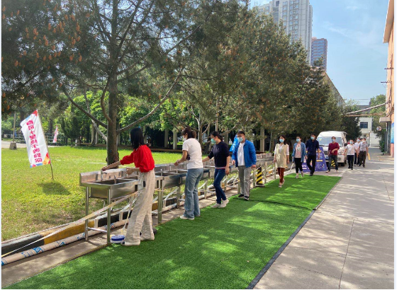 4月30日上午9:30,自强校区举行伙食工作演练。交通运输学院党总支书记仵崇智、电子信息学院党总支书记张伟敏及自强校区综合管理处职工,在校区学生餐厅两家餐饮公司员工的密切配合下,科学、有序的进行了学生就餐现场疫情防控演练。演练由自强校区综合管理处副处长马建萍现场指挥。