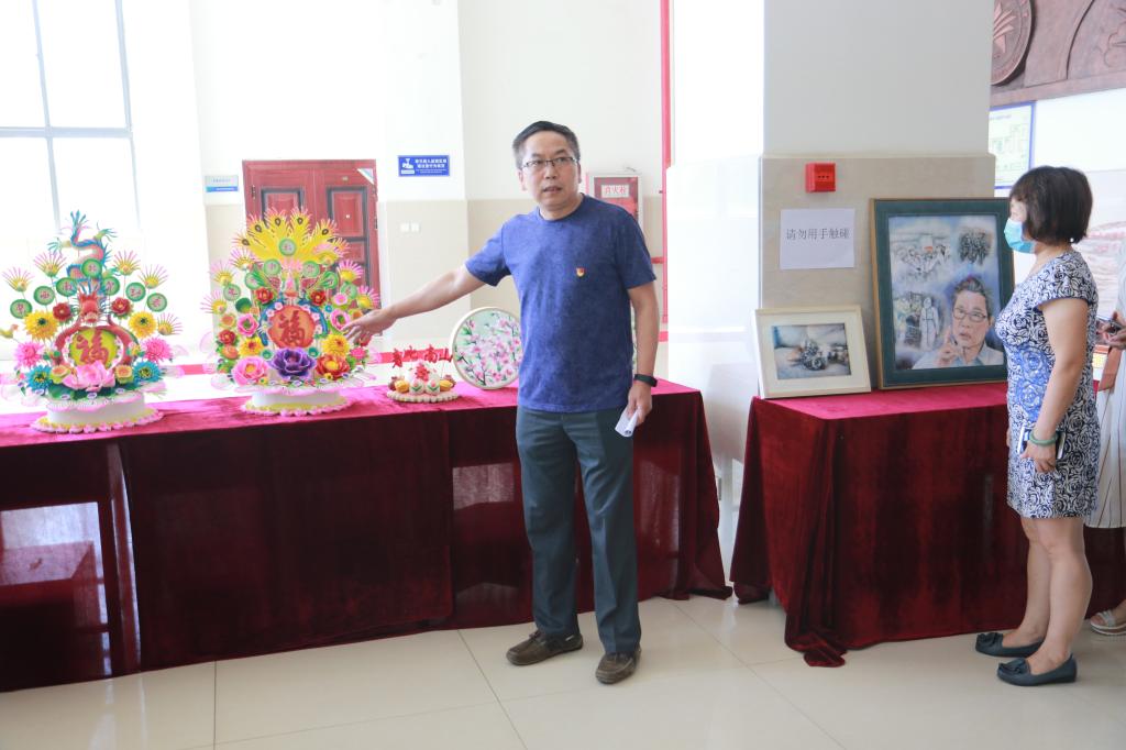 活动分为三个板块,包括参观传统文化长廊、欣赏面花和棉絮画作品、体验非遗传统技艺。