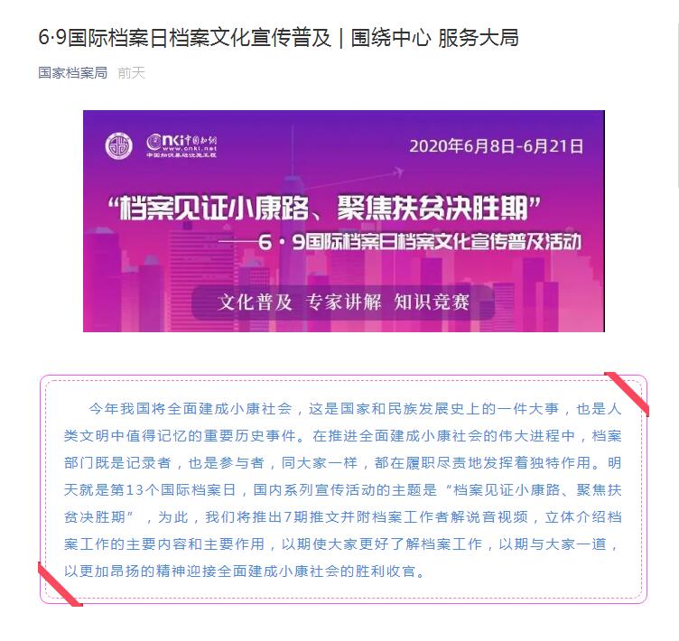 通过线上宣传活动,以文字、照片、视频的方式展示了档案工作在脱贫攻坚中的独特作用与贡献,让贝博官网师生认识档案价值、感受档案魅力,了解档案在服务社会、服务民生中的积极作用。