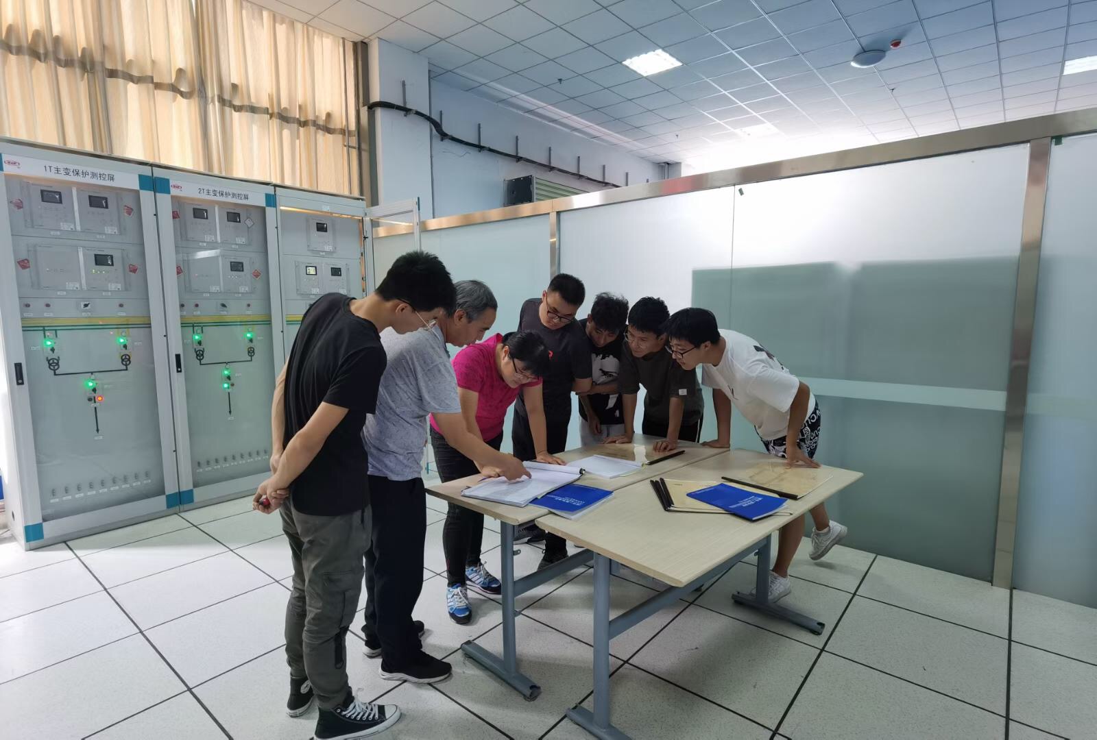 9月1日至9月13日,拟参加2020年中国铁路西安局集团公司职工技术比武(供电系统)的西安供电段代表队职工(部分为贝博官网毕业生),来到电气工程学院新建的先进牵引变电所实训室进行了为期13天的集训。集训内容包括理论知识和变电所馈线故障排查两部分内容。在集训期间,贝博官网除了提供集训设备外,还提供了理论题库、2020年8月刚出版的《高速铁路牵引变电所综合自动化系统》校企合作教材以及部分理论及实操讲解工作。