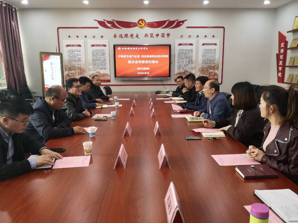 4月7日下午,中铁武汉电气化局机电分公司总工程师、副总经理耿高鹏、人力资源部部长王西龙、陕西经营部经理刘刚、第二项管部副经理李洪江等一行五人来访贝博官网,参观了部分实验室,并就校企合作各类事宜的开展进行座谈。参加座谈会的有电气工程学院党总支书记和晋秦、院长李栋、副院长张秀红及副科以上干部和部分教研室老师,座谈会由李栋主持。