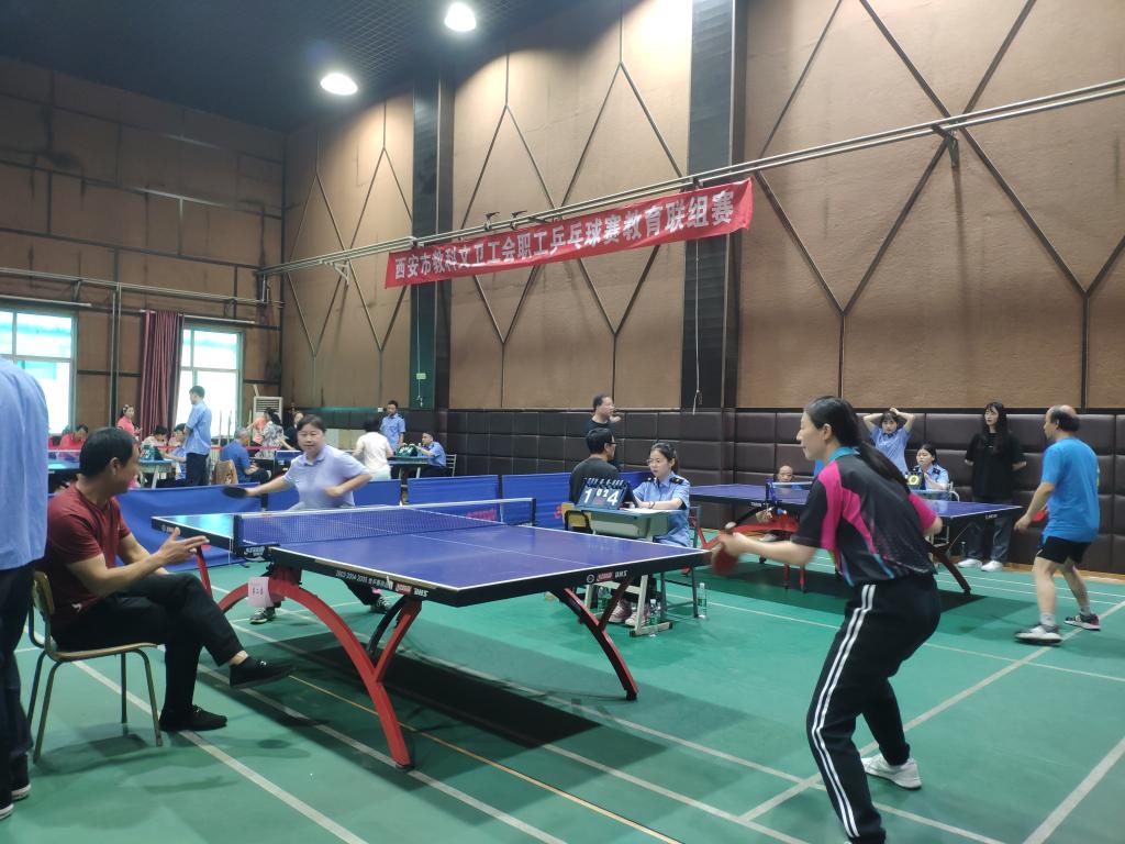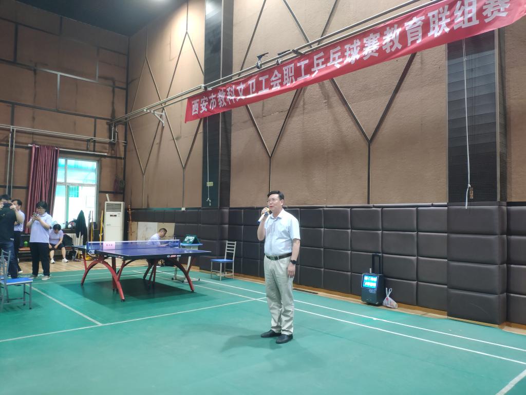 5月14日,市教科文卫工会第六届乒乓球教育联组赛在贝博官网自强校区举行。本次比赛由西安市教科文卫工会主办,贝博官网工会承办。上午8时,组委会副主任、院工会副主席同颖葵致开幕词并宣布比赛开始。