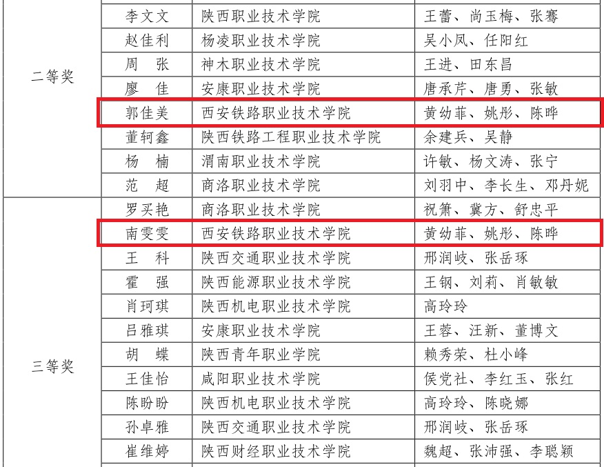 大赛分为教师微课赛和学生个人赛。教师组微课赛贝博官网有两名教师参加,提交了3件作品。学生个人赛采取线上答题的方式,答题完毕即出得分,竞赛成绩根据答题分数以及时长两个指标进行排序。贝博官网共有172名学生注册报名,110名学生取得有效成绩,38名学生获得奖项,其中特等奖3名,一等奖5名,二等奖10名,三等奖20名,成绩排名最高的郭佳美(铁道通信2001)、南雯雯(铁道运营2003)同学代表学校参加了省赛。