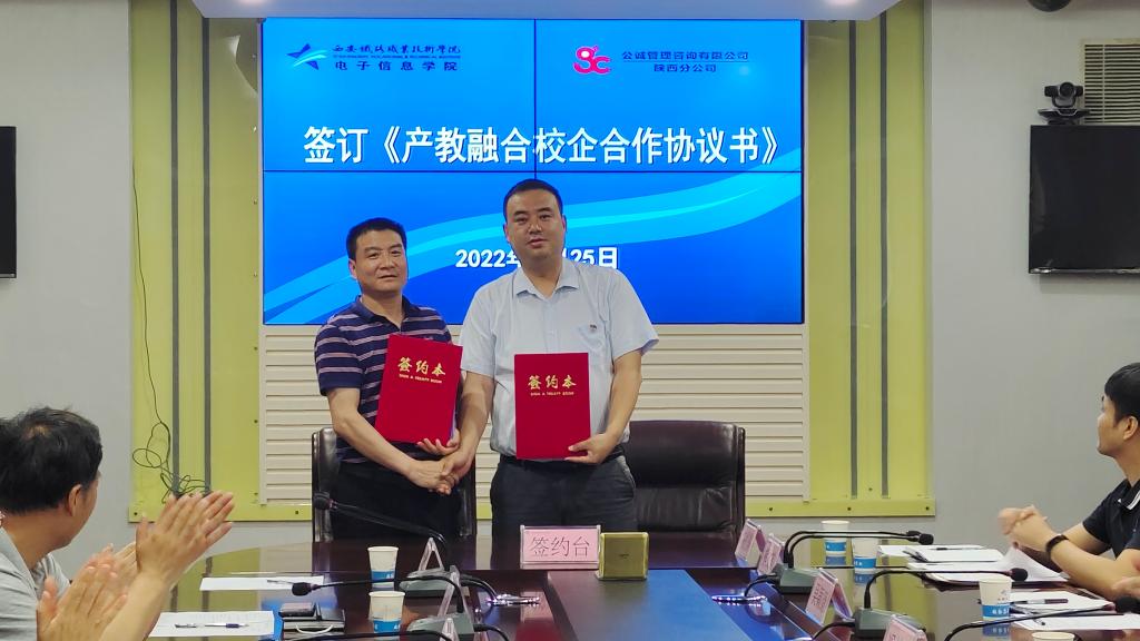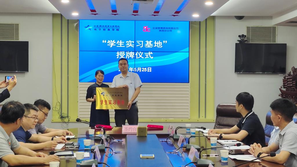 随后,校企双方签订了《产教融合校企合作协议书》。马建萍、吴西蒙分别为公诚管理咨询有限公司陕西分公司授“学生实习基地”和“教师企业实践流动站”牌匾。
