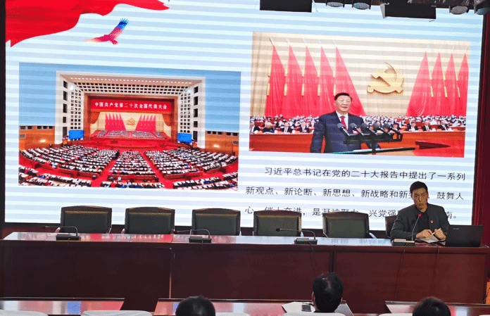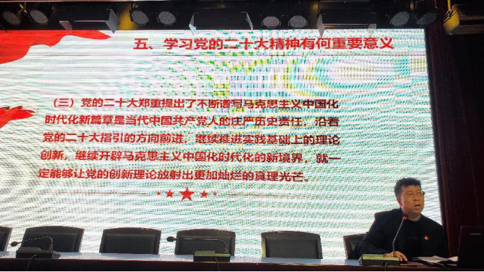 邢卫红、焦雯、郝占辉三位老师分别从“中国共产党全国代表大会与二十大--二十大与你想知道的党的全国代表大会那些事”;“构建人类命运共同体--世界怎么了,我们怎么办”;“坚定不移全面从严治党,深入推进新时代党的建设新的伟大工程--跳出“治乱兴衰历史周期率”的第二个答案等三个专题对党的二十大精神深入宣讲和解读。