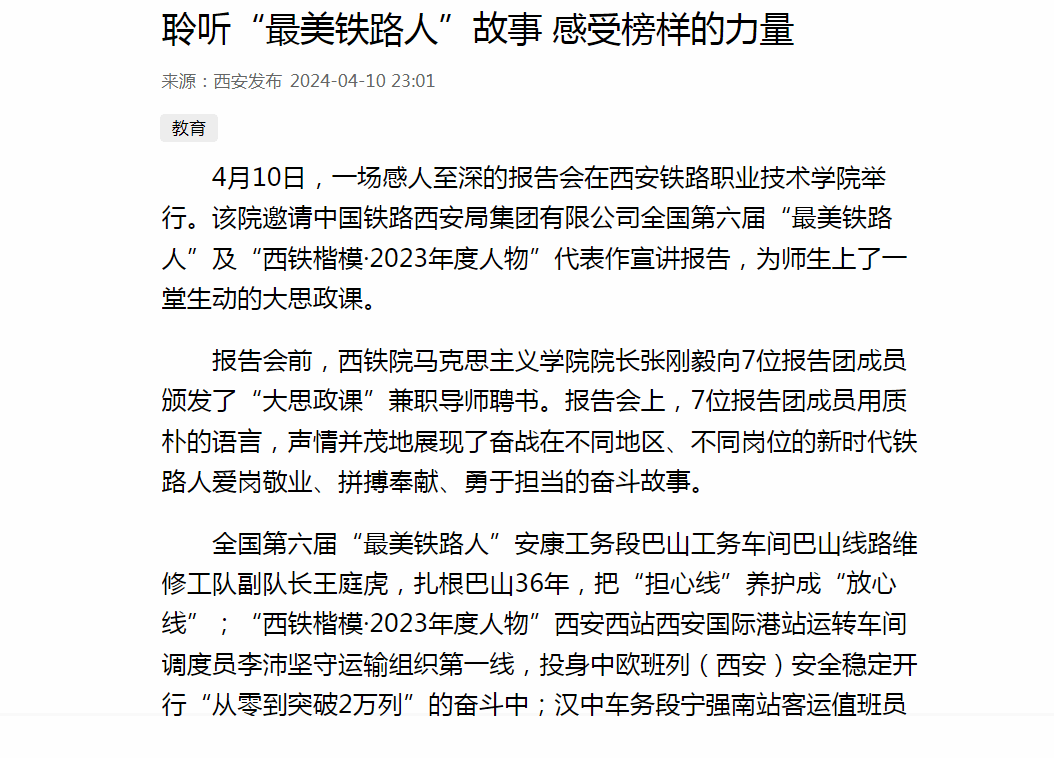 上一条:西安新闻网:聆听“最美铁路人”故事 感...