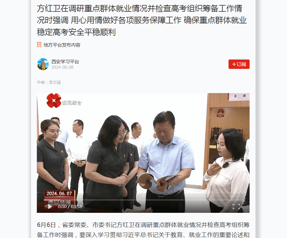 方红卫在调研重点群体就业情况并检查高考组织筹备工作情况时强调 用心用情做好各项服务保障工作 确保重点群体就业稳定高考安全平稳顺利