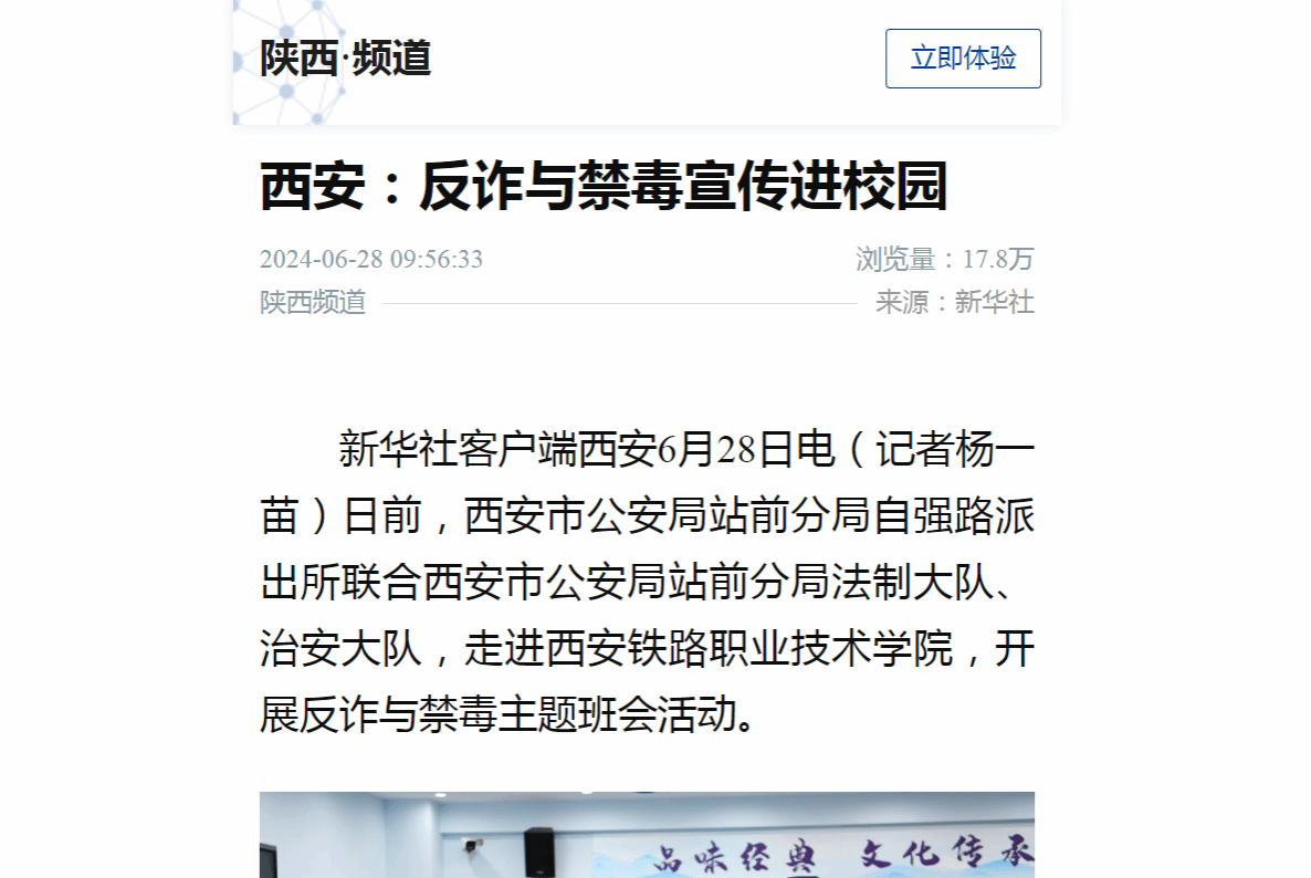下一条:陕西日报:西安:反诈与禁毒宣传进校园