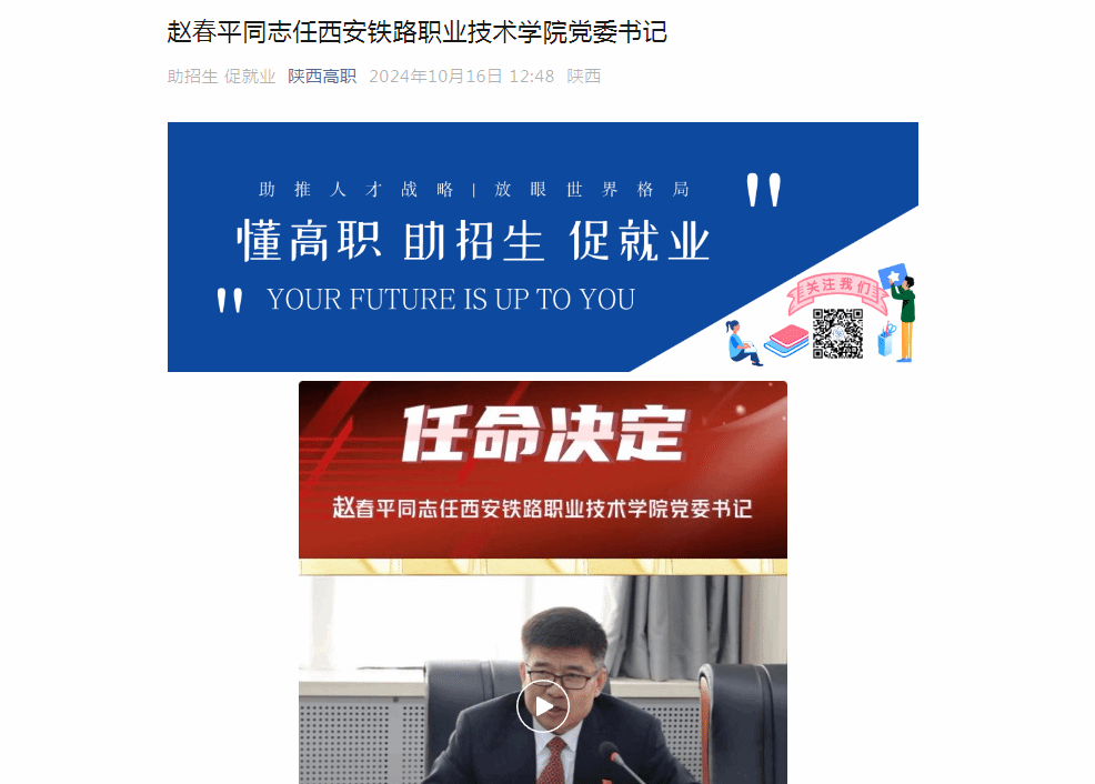上一条:西部网:赵春平同志任西安铁路职业技术...