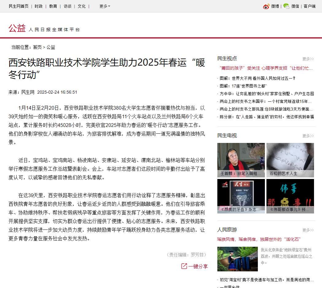民生网:ballBET贝博BB艾弗森学生助力2025年春运“暖冬行动”