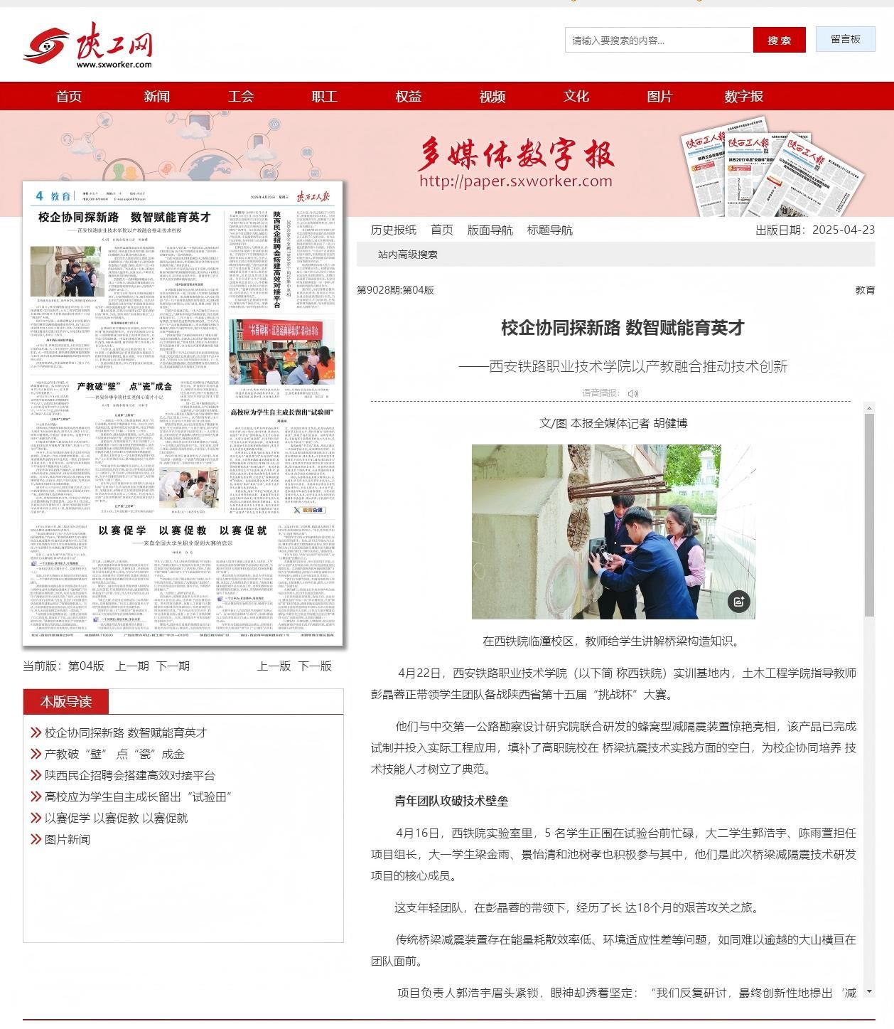 陕西工人报:校企协同探新路 数智赋能育英才——ballBET贝博BB艾弗森以产教融合推动技术创新