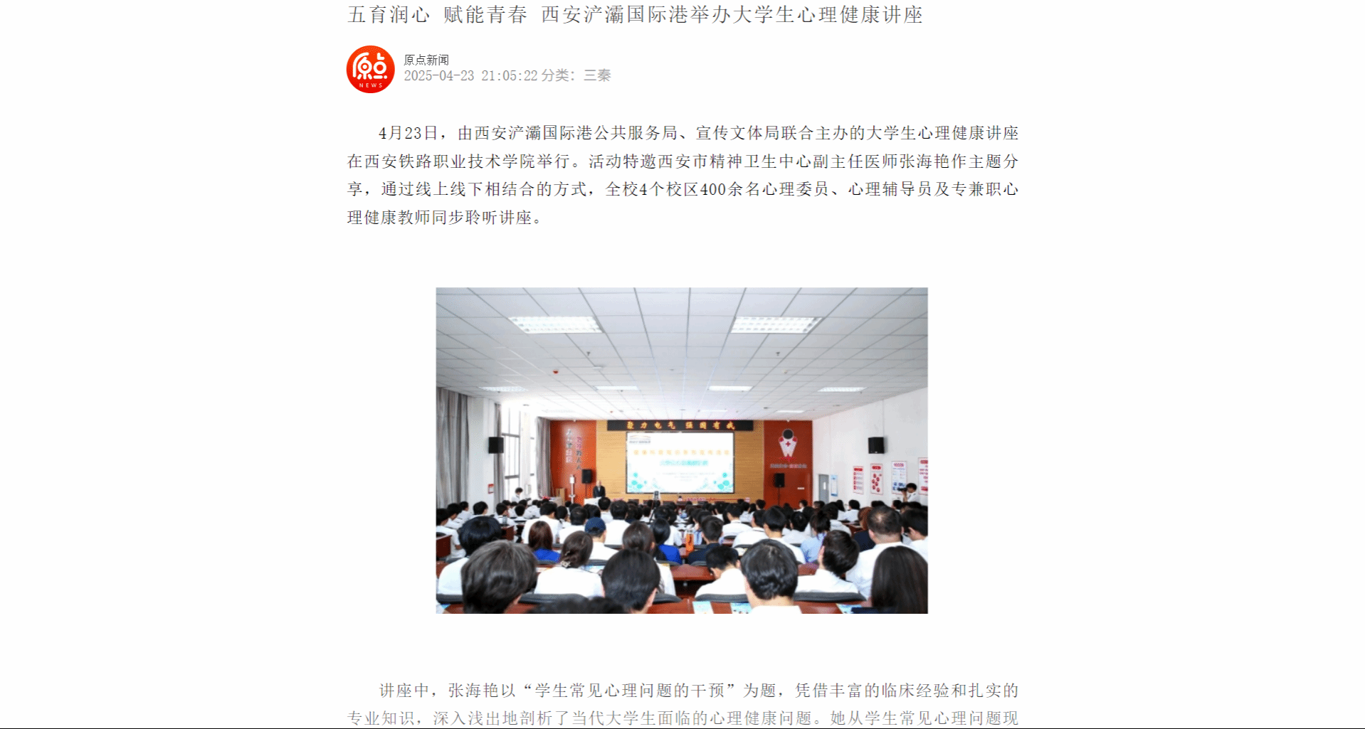 五育润心 赋能青春 西安浐灞国际港举办大学生心理健康讲座