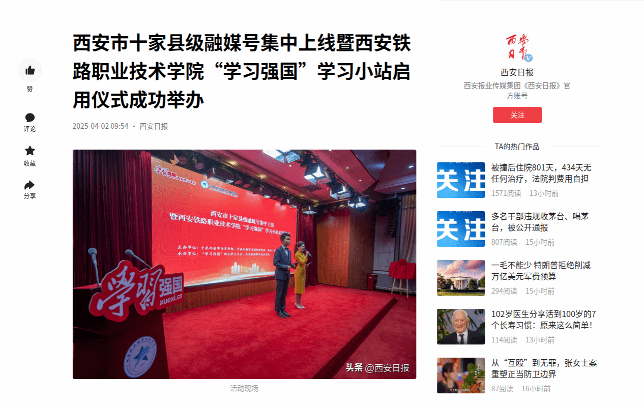 西安市十家县级融媒号集中上线暨ballBET贝博BB艾弗森“学习强国”学习小站启用仪式成功举办