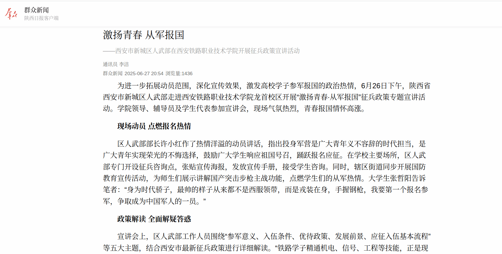 激扬青春 从军报国 ——西安市新城区人武部在ballBET贝博BB艾弗森开展征兵政策宣讲活动
