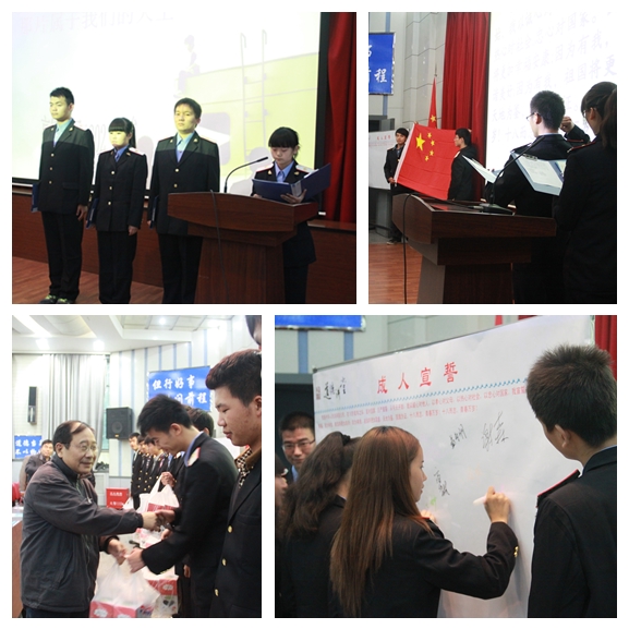 本次道德讲堂的主题为“成长与责任”。是专门面向大一新生所举办,让学生在十八岁之际以更加自立、自强的姿态承担起对自己、对他人、对父母、对社会的责任。在思政部何琦老师的主持下,通过“道德思考”、“省心”等八个环节诠释了成长与责任的内涵:师生对“责任”话题的精彩探讨引人深思;全体师生向“德”字鞠躬,现场神圣而庄严;全体学生合唱青春歌曲《十八季》,用歌声表达出对青春与成长的感悟;何玄、刘佳程等4名学生通过讲述无臂钢琴家刘伟等三名青年楷模的动人故事,引出了成长中的责任与感恩;主持人带领大家一起诵读了梁启超《少年中国说》中的经典段落;在两位领誓学生的带领下,全体学生面对国旗进行十八岁成人宣誓;每位学生还在道德承诺墙上签下了自己的名字,为成人做了庄严的承诺。