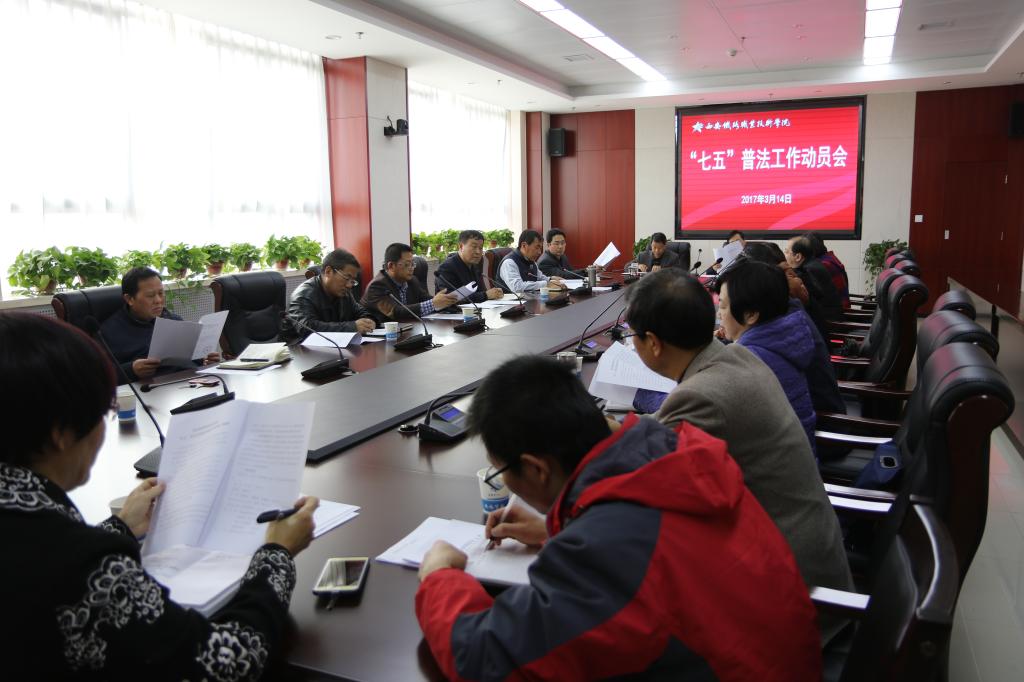 3月14日,学院召开“七五”普法工作动员会,学院普法办全体成员参加会议。党委副书记康敬远出席会议并讲话。学院普法办主任、党委宣传部部长张家琪主持会议。