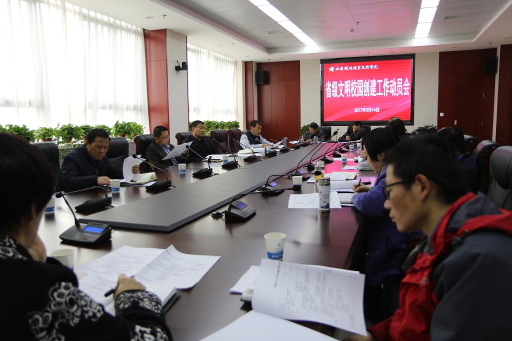 3月14日,学院文明办召开2017年度创建“省级文明校园”工作动员会。学院文明办、各院部党总支书记以及任务责任部门负责人参加会议。党委副书记康敬远出席会议并讲话,学院文明办主任、党委宣传部部长张家琪主持会议。