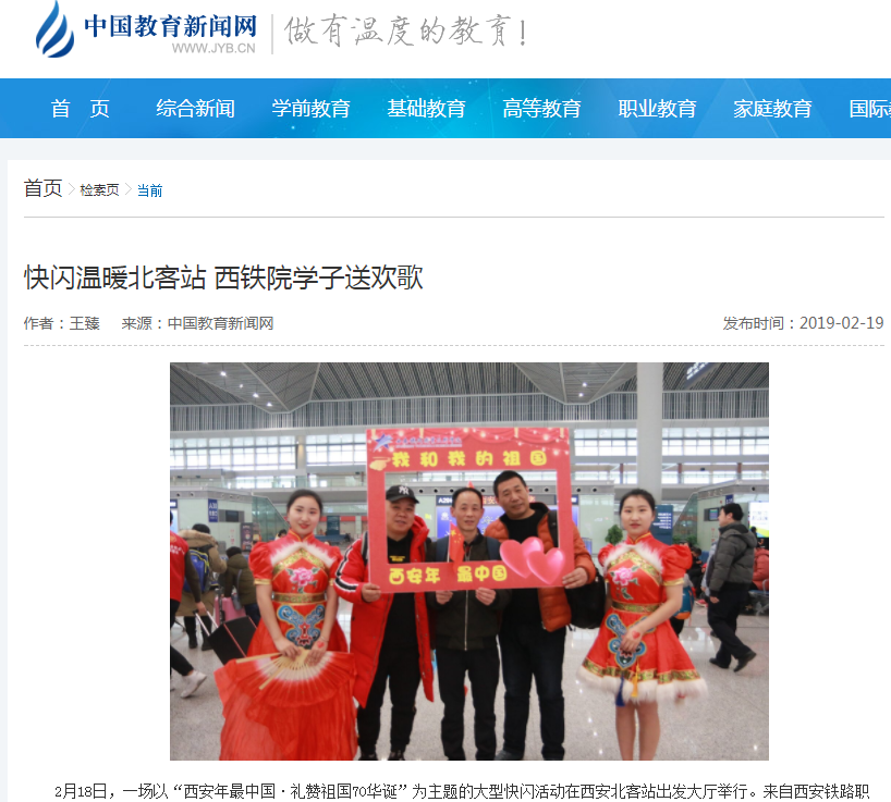 中国教育新闻网:快闪温暖北客站 西铁院学子送欢歌