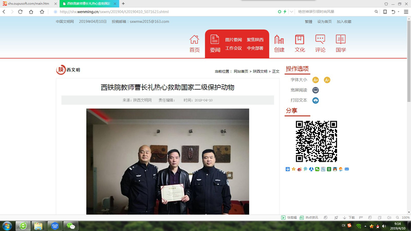 西铁院教师曹长礼热心救助国家二级保护动物-陕西文明网