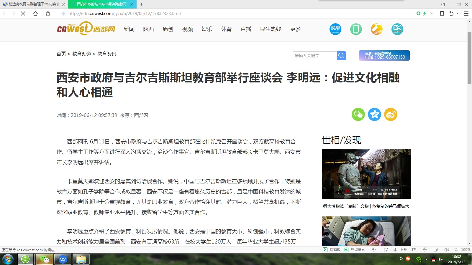 西安市政府与吉尔吉斯斯坦教育部举行座谈会 李明远:促进文化相融和人心相通 - 西部网(陕西新闻网)