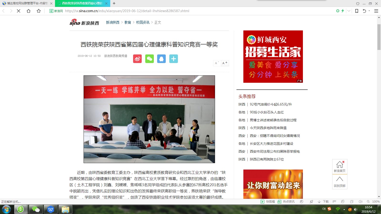 西铁院荣获陕西省第四届心理健康科普知识竞赛一等奖_新浪陕西_新浪网