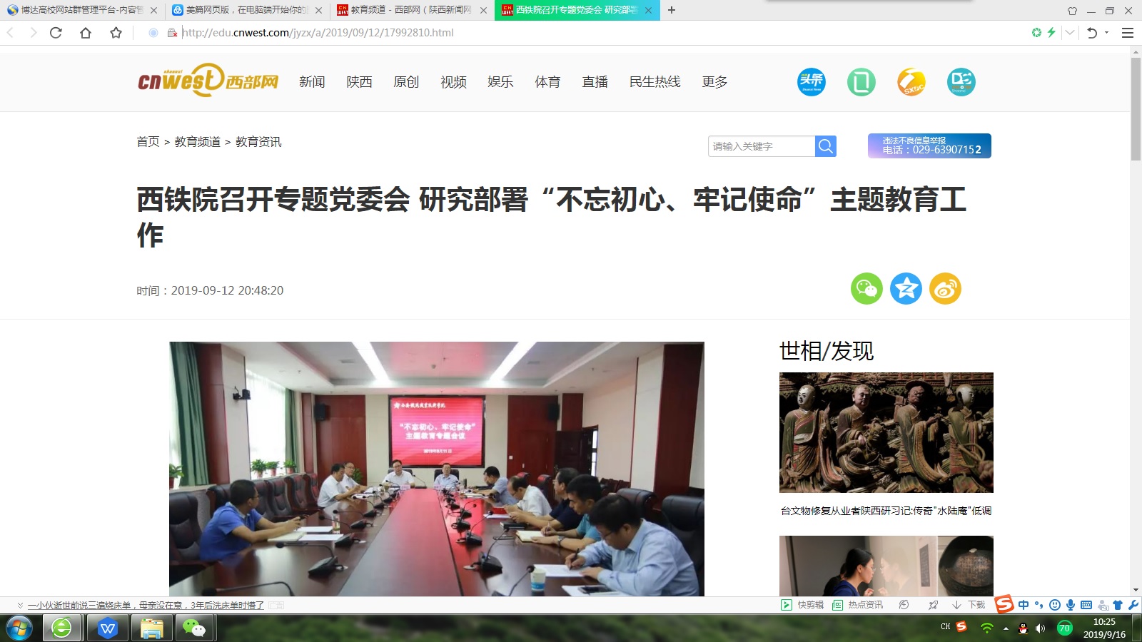 西铁院召开专题党委会 研究部署“不忘初心、牢记使命”主题教育工作 - 西部网(陕西新闻网)