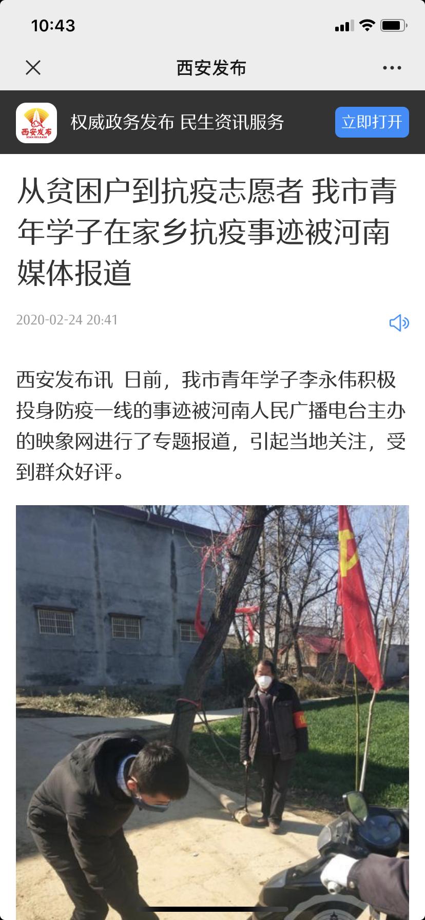从贫困户到抗疫志愿者 我市青年学子在家乡抗疫事迹被河南媒体报道