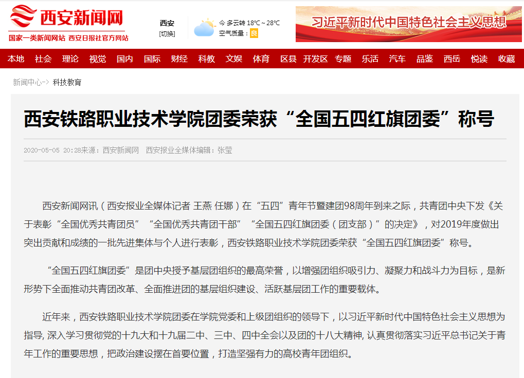 西安新闻网:ballBET贝博BB艾弗森团委荣获“全国五四红旗团委”称号