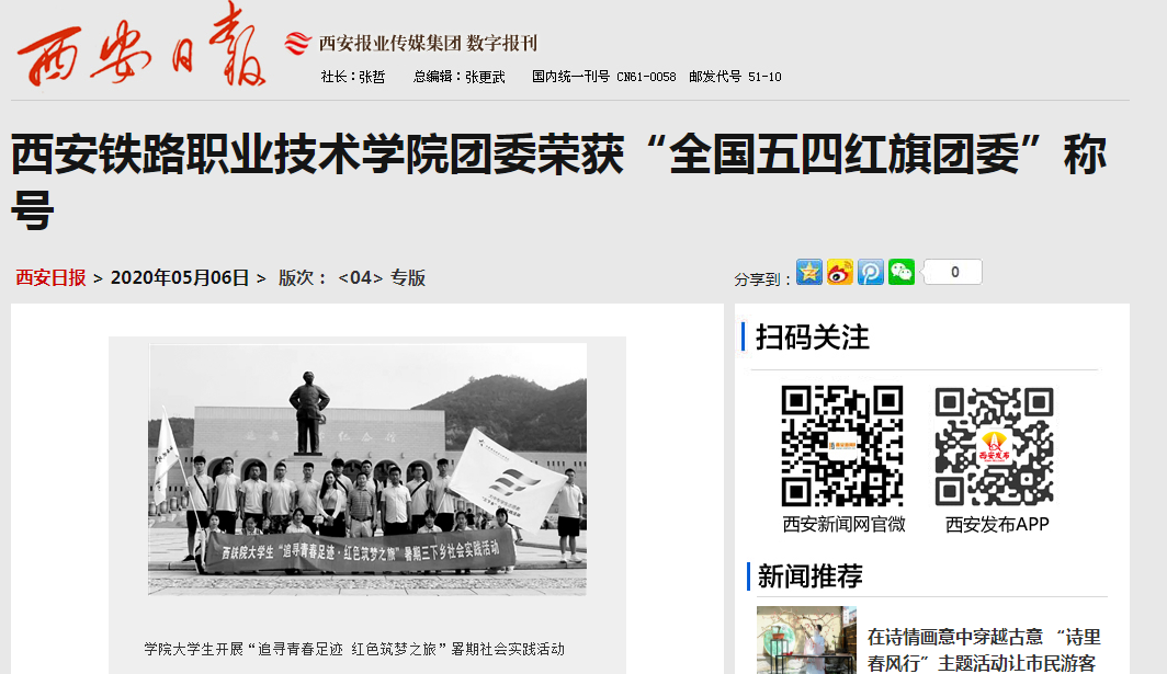 西安日报:ballBET贝博BB艾弗森团委荣获“全国五四红旗团委”称号
