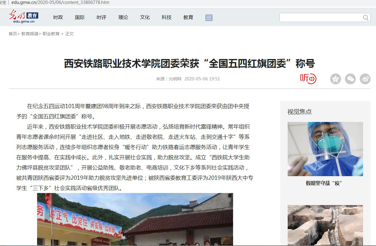 光明网:ballBET贝博BB艾弗森团委荣获“全国五四红旗团委”称号