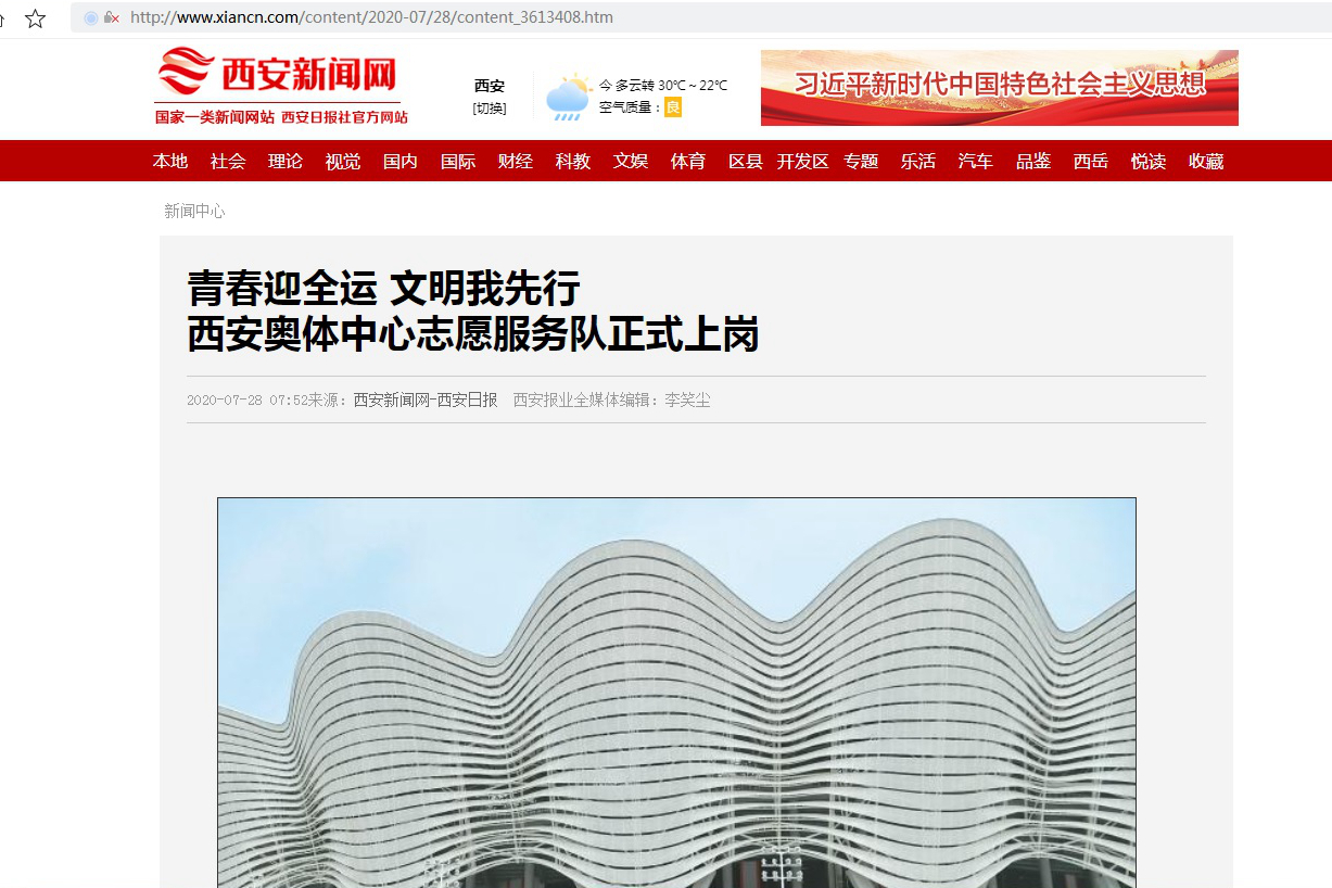 西安新闻网:青春迎全运 文明我先行 西安奥体中心志愿服务队正式上岗