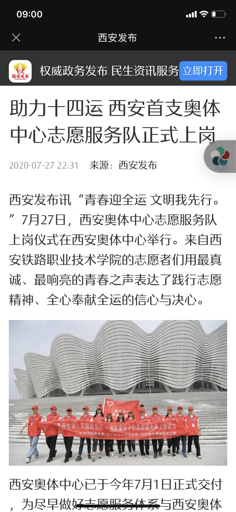 西安发布:助力十四运 西安首支奥体中心志愿服务队正式上岗