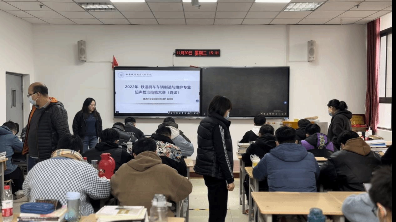 11月30日,牵引动力学院铁道机车车辆制造与维护专业2020级与2021级共42名学生参加超声检测技能大赛。