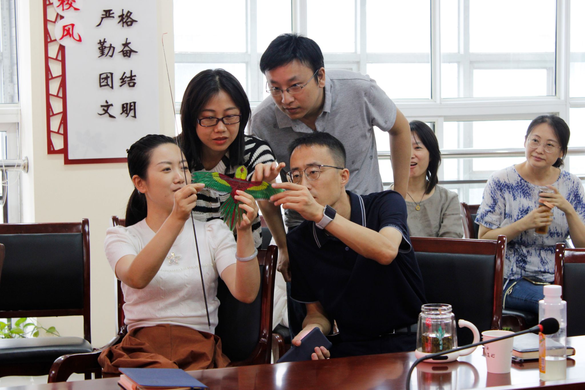老师和学生们时而和传承人拜访制作原理、讨论制作步骤,时而操作体验动态风筝,兴趣盎然,沉浸式感受着非遗的魅力。在传承人的身上,大家看到了对非遗文化的执着与创新,更看到了一份传承的责任与使命。