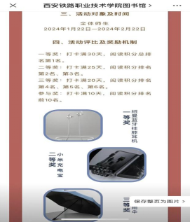 为开展好阅读打卡活动,图书馆精心策划了活动方案,悉心选择了上百种书籍,通过微信公众平台、图书馆官网等新媒体平台进行广泛宣传,鼓励师生积极参与阅读活动。