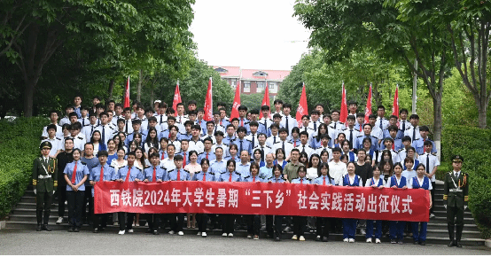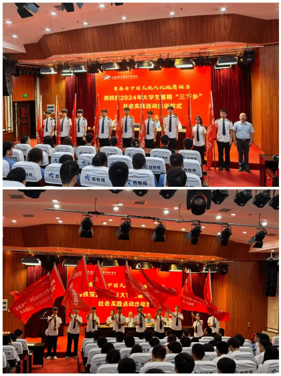 仪式在中国共产主义青年团团歌中拉开序幕。李栋、王琛、田辰分别宣读了《西铁院关于开展2024年学生暑期“三下乡”社会实践活动的通知》《西铁院2024年暑期社会实践重点团队名单》《西铁院2024年暑期“三下乡”社会实践活动纪律安全细则》。